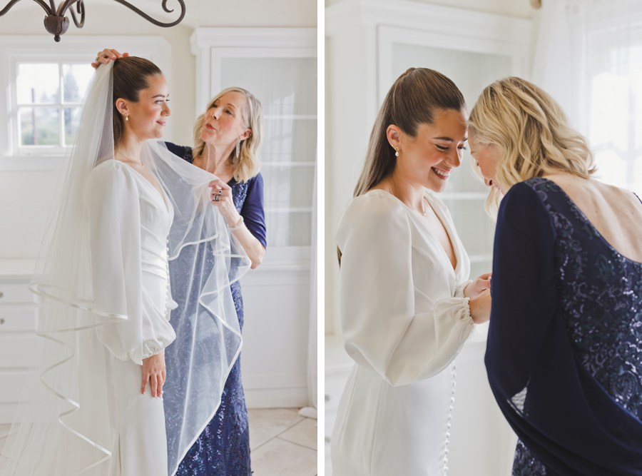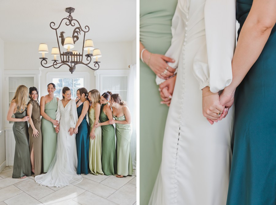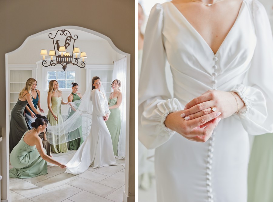 What stood out most was how openly affectionate everyone was. Christina kept complimenting her bridesmaids, thanking them, and pulling them into hugs. Her mom helped her into her dress, which had a beautiful button-front design and long sleeves that felt timeless without feeling formal.