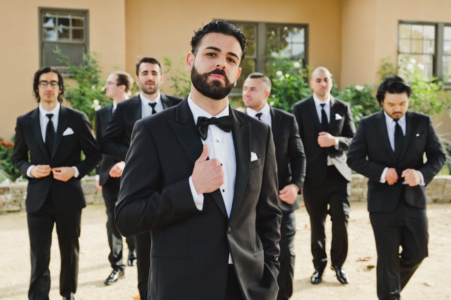For her first look with Shayan, Christina chose the fountain. Instead of a tap, she had him turn around. His reaction was instant, shocked, emotional, wiping tears, completely taken in by her dress. Afterward, we wandered the gardens for portraits before bringing in the wedding party.