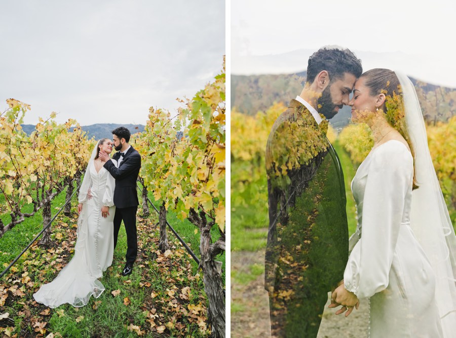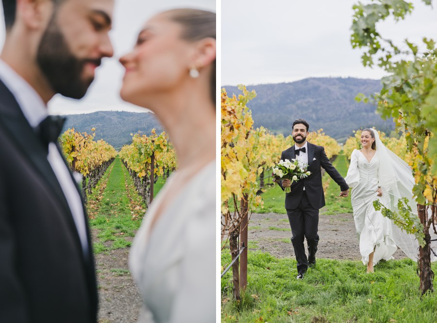 Instead of forcing a golden-hour moment, we leaned into what the evening gave us. The fall vineyard colors were rich and moody, perfect for something a little more creative.