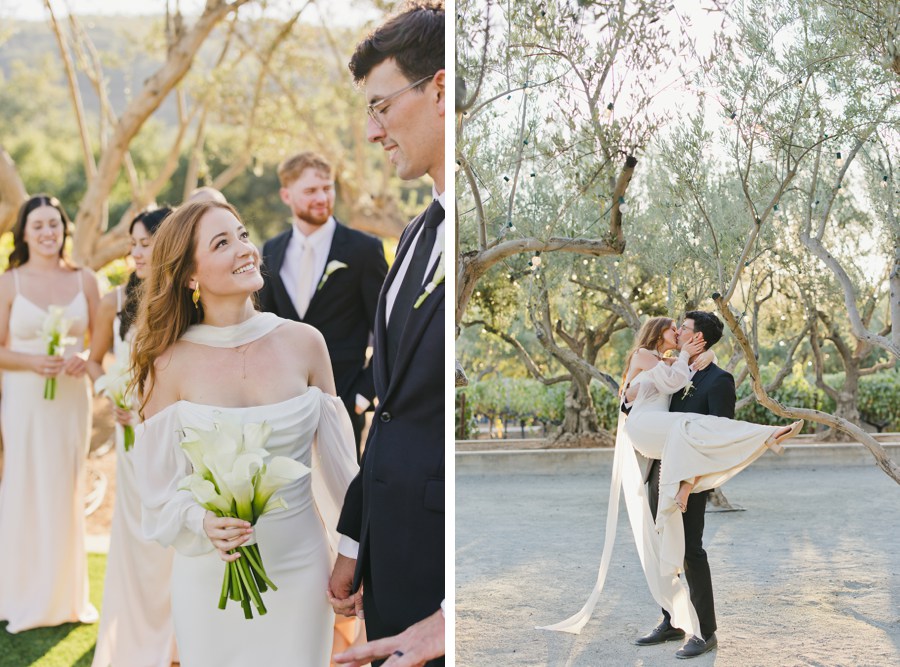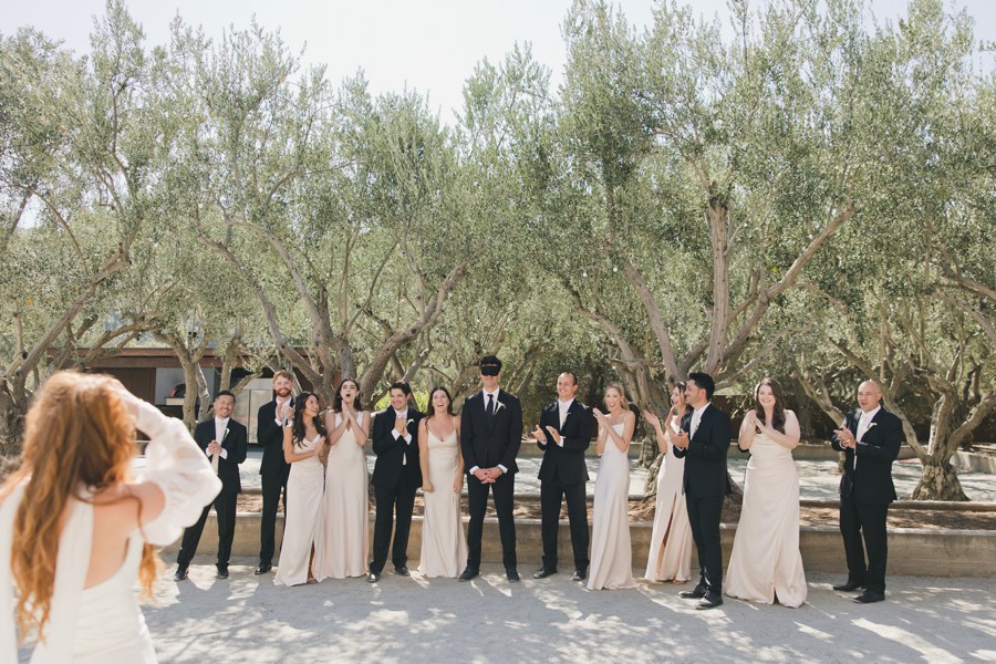 Cierra told me early on that they were “passionate but silly,” and lol, did they deliver. The morning started with so much sweetness… lots of hugs with her mom and that gorgeous, whimsical gown that looked like it was made for a fall day in the ranch’s olive groves. But this is when it got fun! The “first look” that wasn’t exactly a first look: