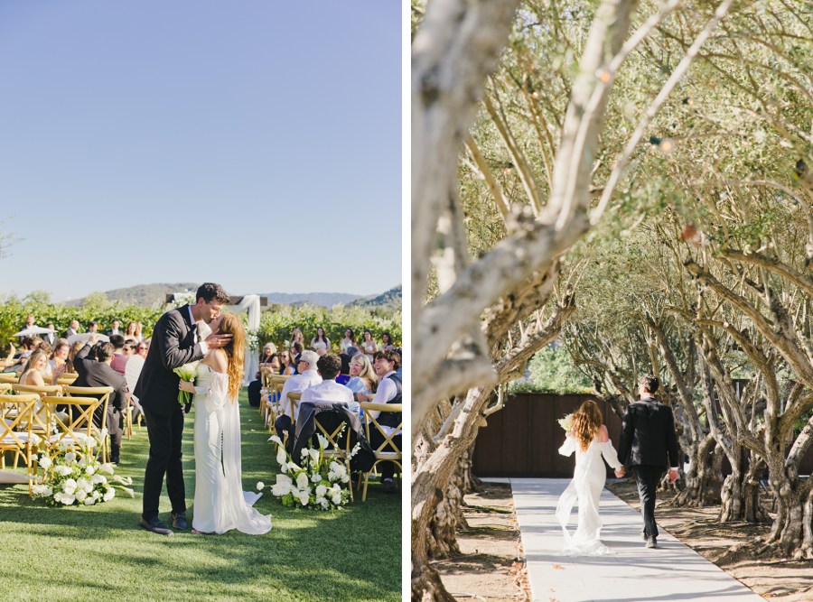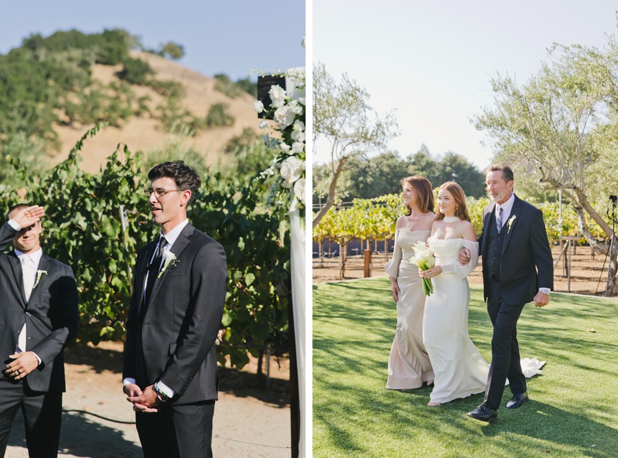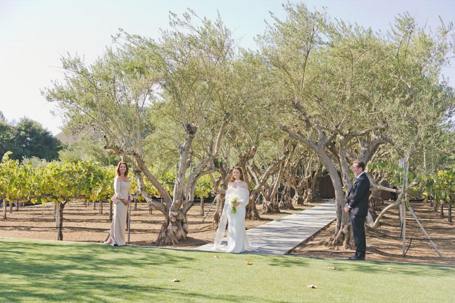 Mohi Ranch was doing its thing, soft golden light filtering through the trees, that dreamy ceremony setup tucked into the vineyard… it all felt so peaceful and intimate even with such a big group. Walking through the olive trees with their entire crew felt like something out of a movie, but still totally relaxed and grounded in family.
