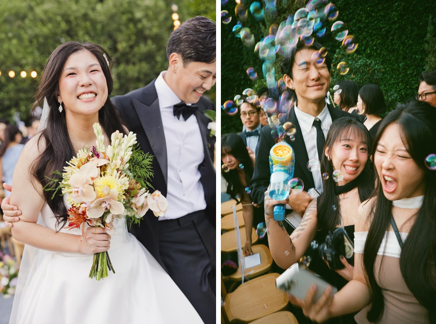 We captured the day using both film and digital to lean into a documentary wedding photography approach. There were moments that felt pulled straight from a vintage movie reel: tearful first looks, deep belly laughs, and blink-and-you-miss-it glances that speak volumes. The Fig House is one of those places where every corner photographs beautifully. As Los Angeles wedding photographers, it’s a dream location for real moments and colorful backdrops.