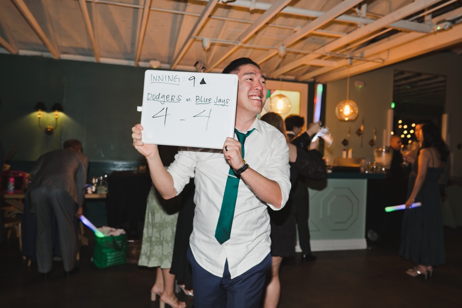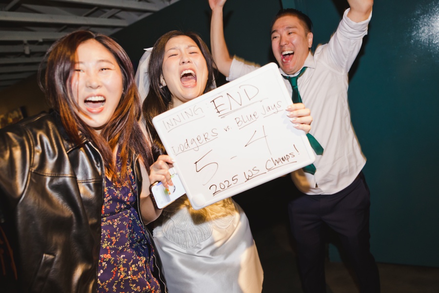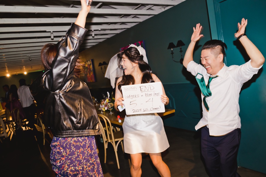The Dodgers won the World Series, and these two tied the knot. This Fig House wedding had it all: bold color, champagne toasts, electric dance floor energy, and a scoreboard update that sent guests into a full-blown celebration. The timing couldn’t have been more perfect for a couple who lives for baseball and big feelings. This one hit different.