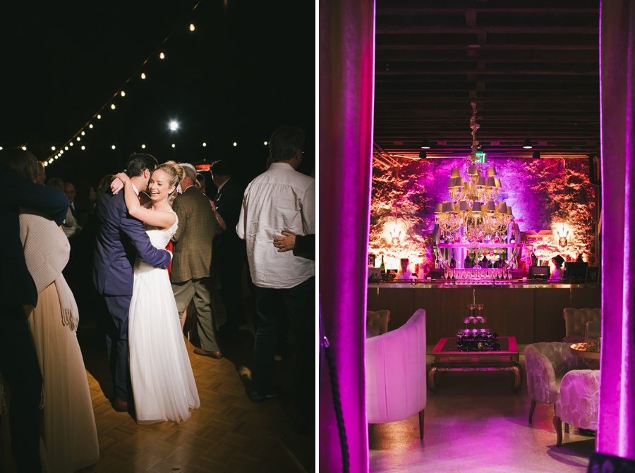 Elysse described her style as “simple, but eclectic,” and the day captured that vibe perfectly. Fresh florals in soft shades, relaxed garden seating, personalized signage, and a glowing dance floor created a setting that felt elegant, easy, and full of heart. And to top it all off, they ended the night with an afterparty in the famous Bubbles Room: a moody, velvet-draped lounge that’s equal parts charm and sexy sparkle.