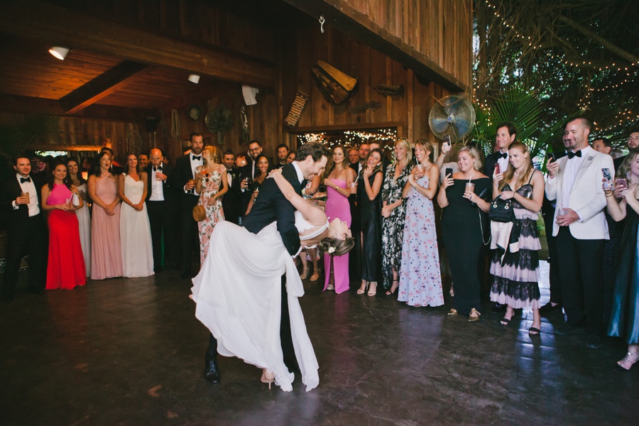 “We were lucky to find a venue so lush with greenery and flowers. The place is covered in tropical plants and orchids, which were Rob’s mother’s favorite flower. She passed away a few years ago but her spirit was there with us throughout the property. ”