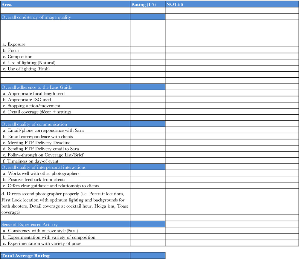 As each of us is photographing, I am reviewing the imagery and taking notes on the report below (in view of our Lens Guide). I am assessing each team member’s performance based upon these criteria, and in view of how you are performing compared to the rest of the team. (It’s like back in high school when you were graded on a curve. Our best team members set that curve, and we are all striving to achieve more consistency each day). The more consistent you become, the better your imagery becomes – and the more successful you become.