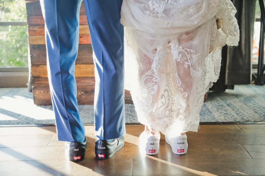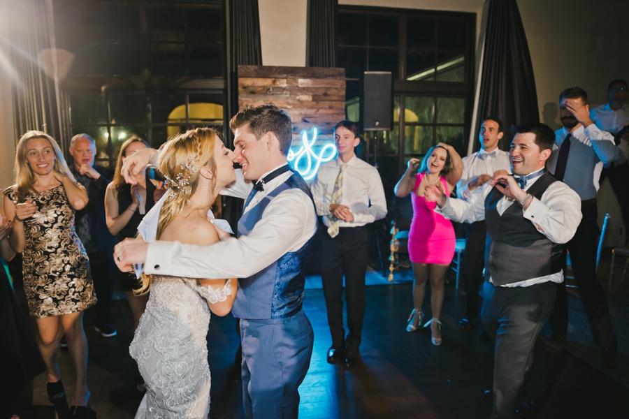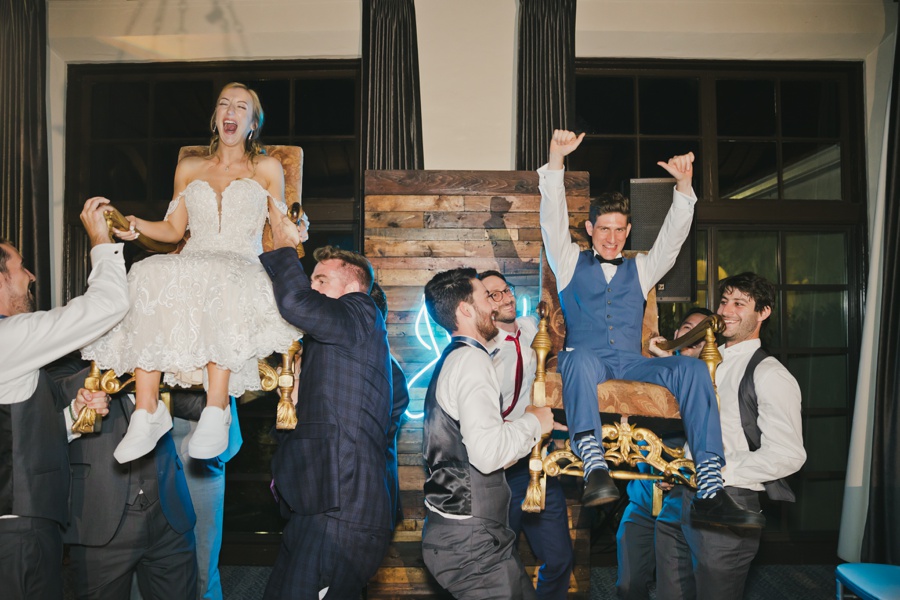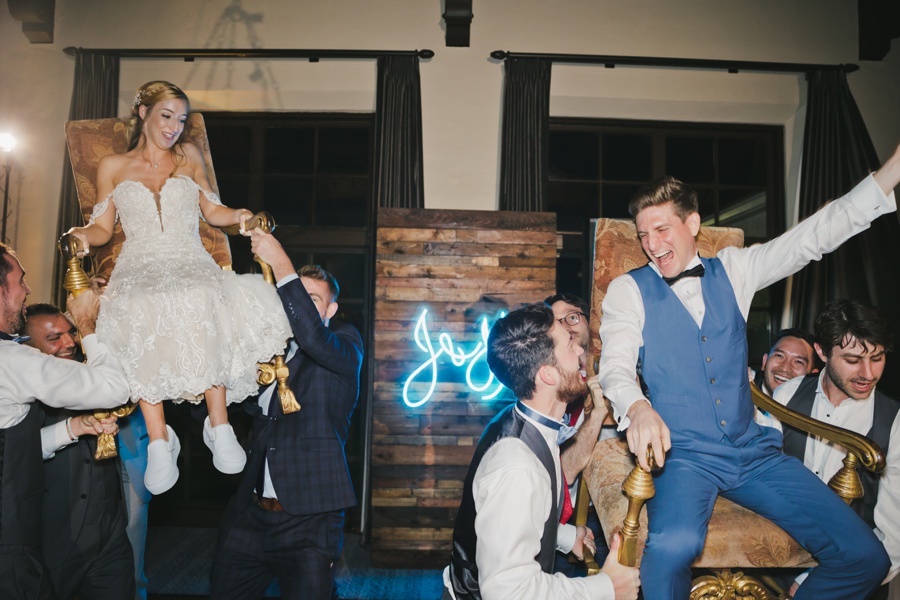 There were so many happy details in this wedding, from fun slippers and shoes, to a confetti recessional and a neon lights wall at their reception. We loved how joyful this crew was, especially the dance party which was QUITE hot!
