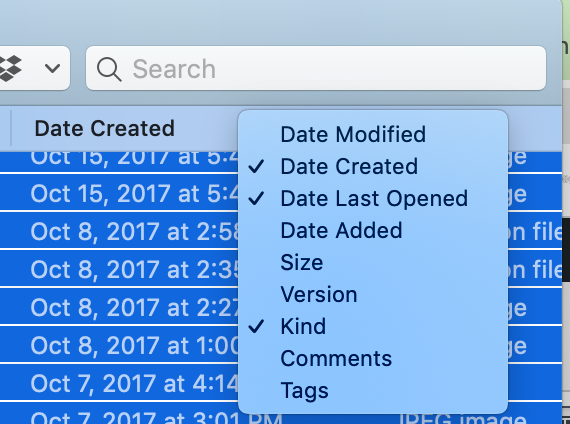 In List view, right-click on the option bar and add the “Date Created” column in Finder view settings.